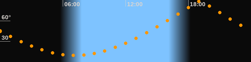 | Höchster Stand (Kulmination) | 19:07 Uhr (h = 88,4°) |