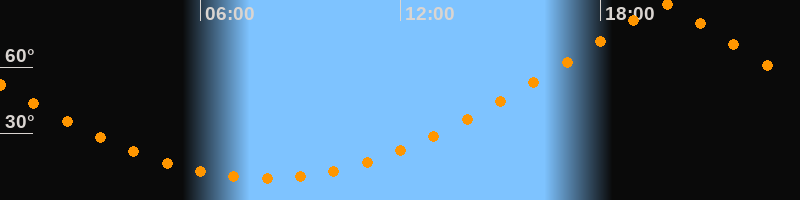 Höchster Stand (Kulmination)19:55 Uhr (h = 88,4°)