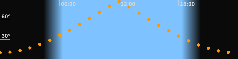 | Höchster Stand (Kulmination) | 11:55 Uhr (h = 88,4°) |