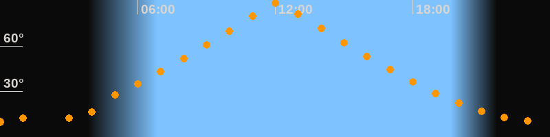 | Höchster Stand (Kulmination) | 12:04 Uhr (h = 88,4°) |