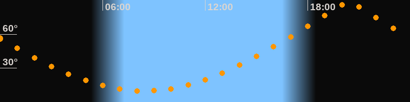 | Höchster Stand (Kulmination) | 20:23 Uhr (h = 88,4°) |