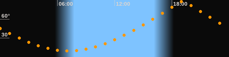 | Höchster Stand (Kulmination) | 19:09 Uhr (h = 88,4°) |