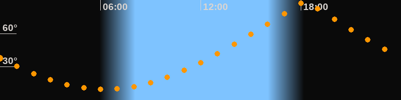 | Höchster Stand (Kulmination) | 18:14 Uhr (h = 88,4°) |