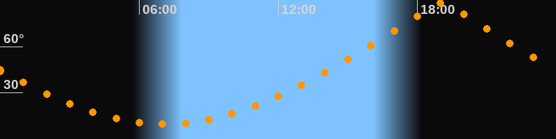 Höchster Stand (Kulmination)19:04 Uhr (h = 88,4°)