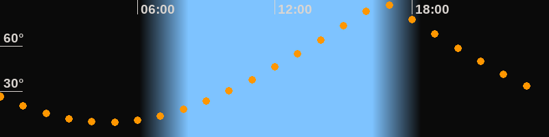 | Höchster Stand (Kulmination) | 16:42 Uhr (h = 88,4°) |