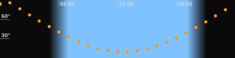 | Höchster Stand (Kulmination) | 00:32 Uhr (h = 88,4°) |