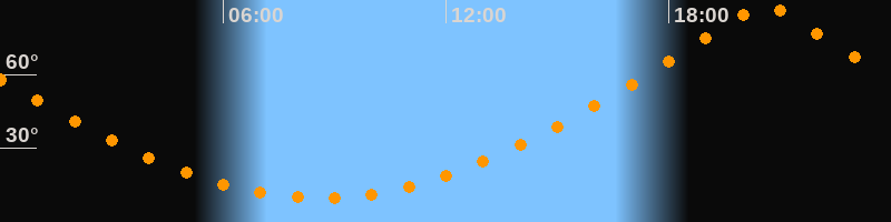 | Höchster Stand (Kulmination) | 20:35 Uhr (h = 88,4°) |