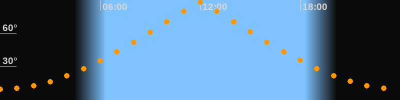 | Höchster Stand (Kulmination) | 12:00 Uhr (h = 88,4°) |