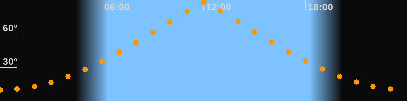 | Höchster Stand (Kulmination) | 12:01 Uhr (h = 88,4°) |