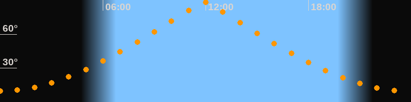 | Höchster Stand (Kulmination) | 11:55 Uhr (h = 88,4°) |