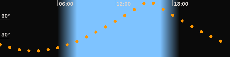 | Höchster Stand (Kulmination) | 15:31 Uhr (h = 88,4°) |