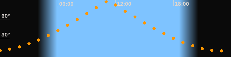 | Höchster Stand (Kulmination) | 11:12 Uhr (h = 88,4°) |