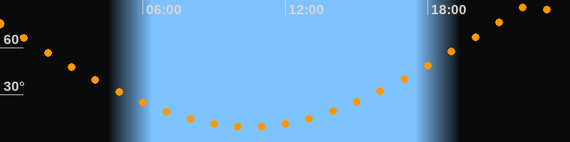| Höchster Stand (Kulmination) | 22:25 Uhr (h = 88,4°) |
