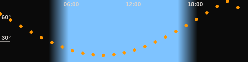 | Höchster Stand (Kulmination) | 21:54 Uhr (h = 88,4°) |