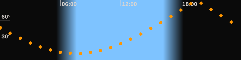 | Höchster Stand (Kulmination) | 19:32 Uhr (h = 88,4°) |