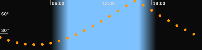 | Höchster Stand (Kulmination) | 16:04 Uhr (h = 88,4°) |