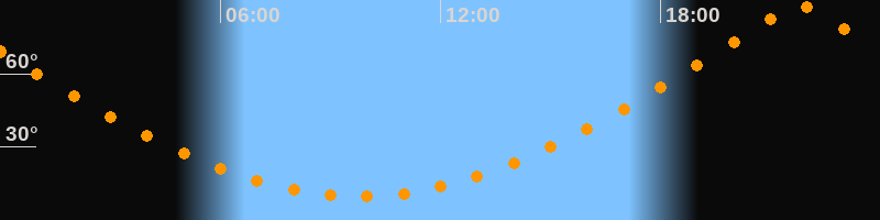 | Höchster Stand (Kulmination) | 21:47 Uhr (h = 88,4°) |