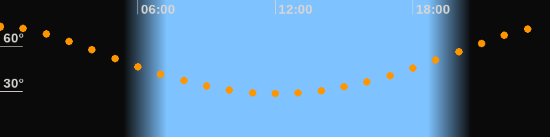 Höchster Stand (Kulmination)00:04 Uhr (h = 72,7°)