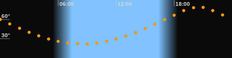 | Höchster Stand (Kulmination) | 20:30 Uhr (h = 79,3°) |