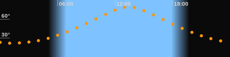 | Höchster Stand (Kulmination) | 13:25 Uhr (h = 79,3°) |