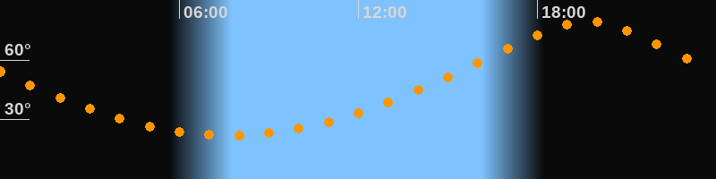 | Höchster Stand (Kulmination) | 19:40 Uhr (h = 79,3°) |