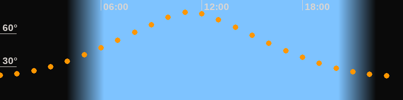 | Höchster Stand (Kulmination) | 11:19 Uhr (h = 79,3°) |