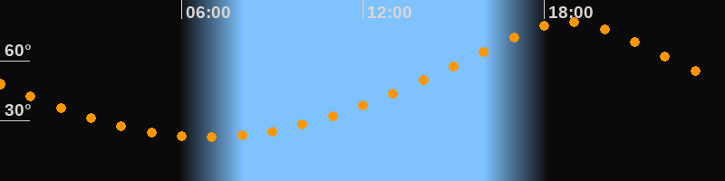 | Höchster Stand (Kulmination) | 18:51 Uhr (h = 79,3°) |