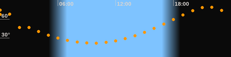 | Höchster Stand (Kulmination) | 21:33 Uhr (h = 79,3°) |