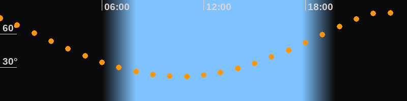 | Höchster Stand (Kulmination) | 22:33 Uhr (h = 79,3°) |