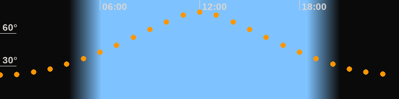 | Höchster Stand (Kulmination) | 12:00 Uhr (h = 79,3°) |