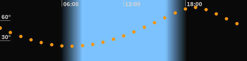 | Höchster Stand (Kulmination) | 18:53 Uhr (h = 79,3°) |