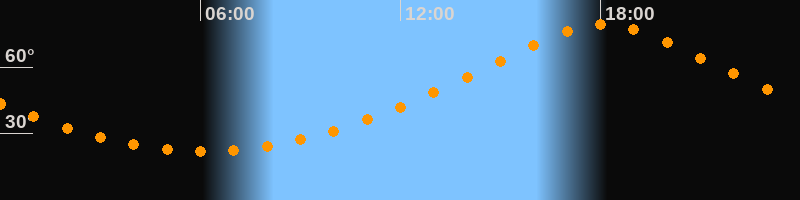 | Höchster Stand (Kulmination) | 18:06 Uhr (h = 79,3°) |