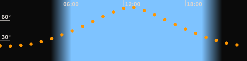 | Höchster Stand (Kulmination) | 12:41 Uhr (h = 79,3°) |