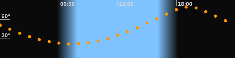 | Höchster Stand (Kulmination) | 19:16 Uhr (h = 79,3°) |
