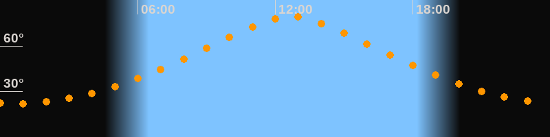 | Höchster Stand (Kulmination) | 12:40 Uhr (h = 79,3°) |