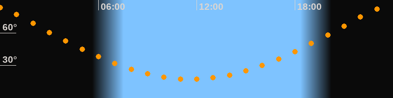 Höchster Stand (Kulmination)23:36 Uhr (h = 84°)