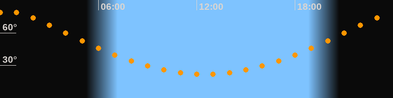 Höchster Stand (Kulmination)00:28 Uhr (h = 79,5°)
