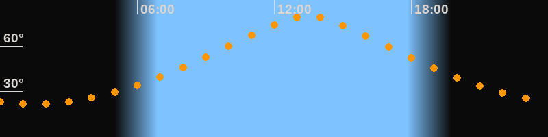 Höchster Stand (Kulmination)13:27 Uhr (h = 79,5°)