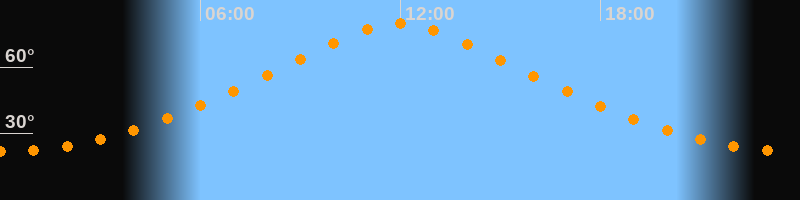 | Höchster Stand (Kulmination) | 11:58 Uhr (h = 79,6°) |