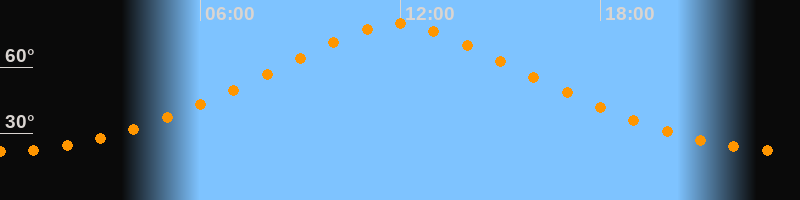 | Höchster Stand (Kulmination) | 11:54 Uhr (h = 79,6°) |