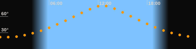 | Höchster Stand (Kulmination) | 12:34 Uhr (h = 79,6°) |