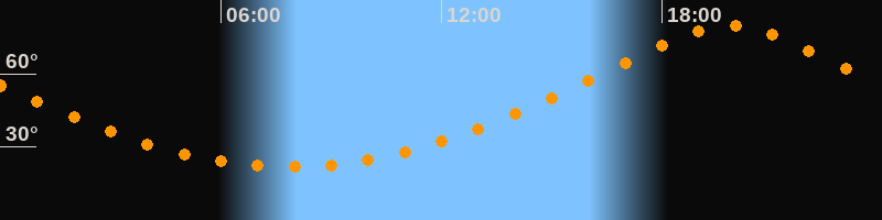 | Höchster Stand (Kulmination) | 19:51 Uhr (h = 79,6°) |