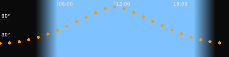 | Höchster Stand (Kulmination) | 12:01 Uhr (h = 79,6°) |
