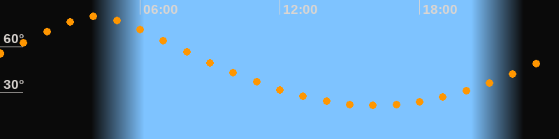 | Höchster Stand (Kulmination) | 04:04 Uhr (h = 79,6°) |