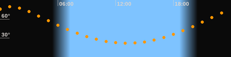 | Höchster Stand (Kulmination) | 01:07 Uhr (h = 79,6°) |