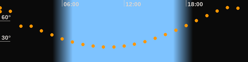 | Höchster Stand (Kulmination) | 22:24 Uhr (h = 79,6°) |