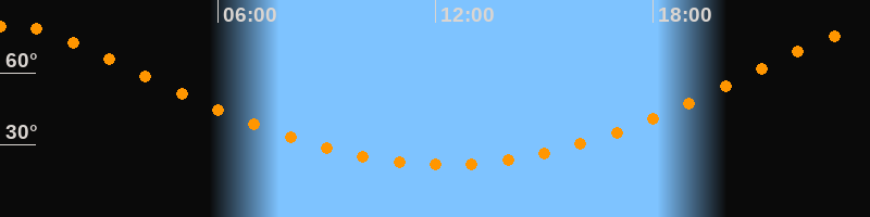| Höchster Stand (Kulmination) | 00:15 Uhr (h = 79,6°) |