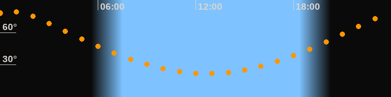 | Höchster Stand (Kulmination) | 00:40 Uhr (h = 79,6°) |