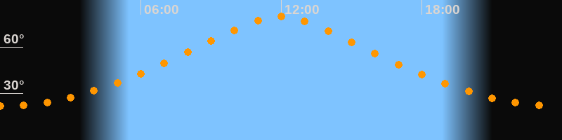 | Höchster Stand (Kulmination) | 11:56 Uhr (h = 79,6°) |