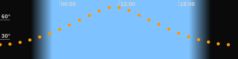 | Höchster Stand (Kulmination) | 11:32 Uhr (h = 79,6°) |